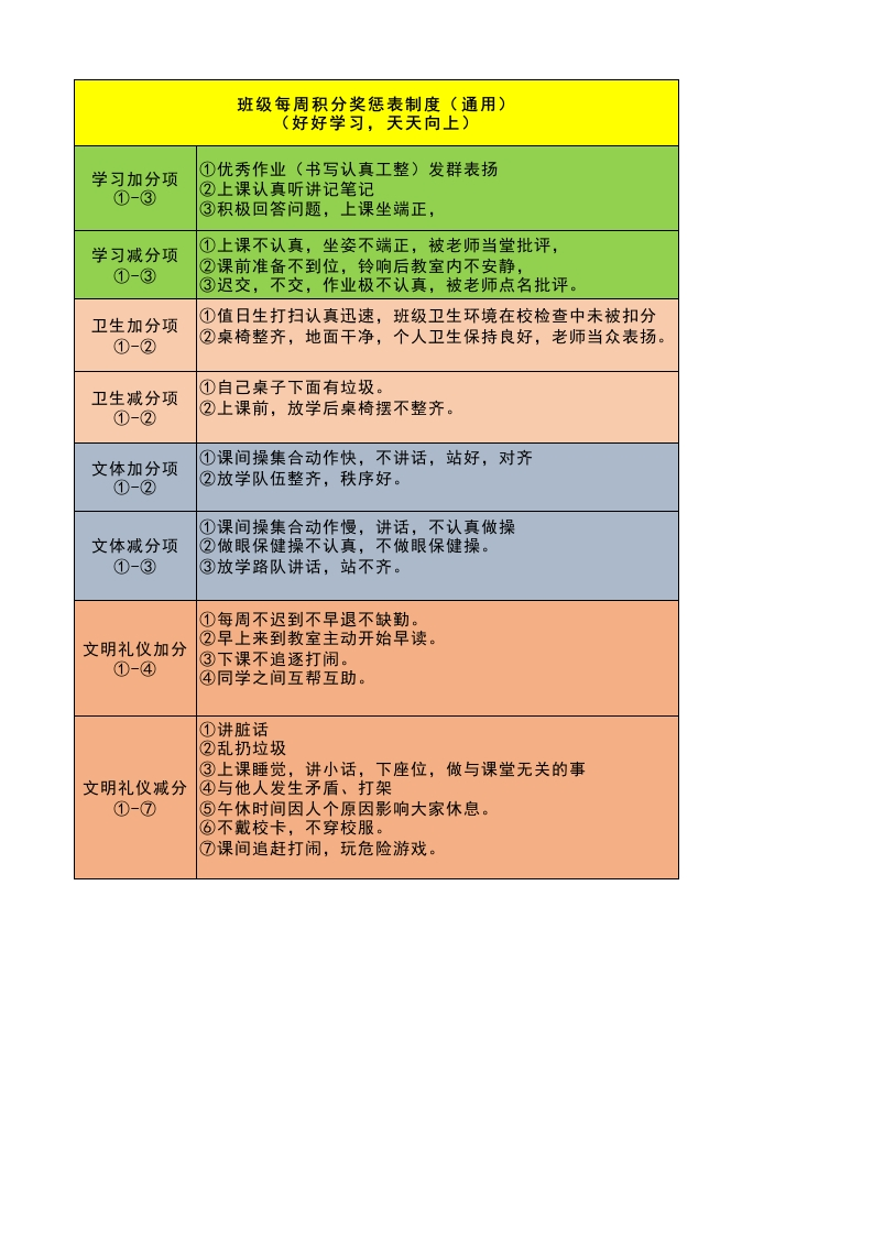5、班级每周积分奖惩表制度此内容为免费资源,请登录后查看