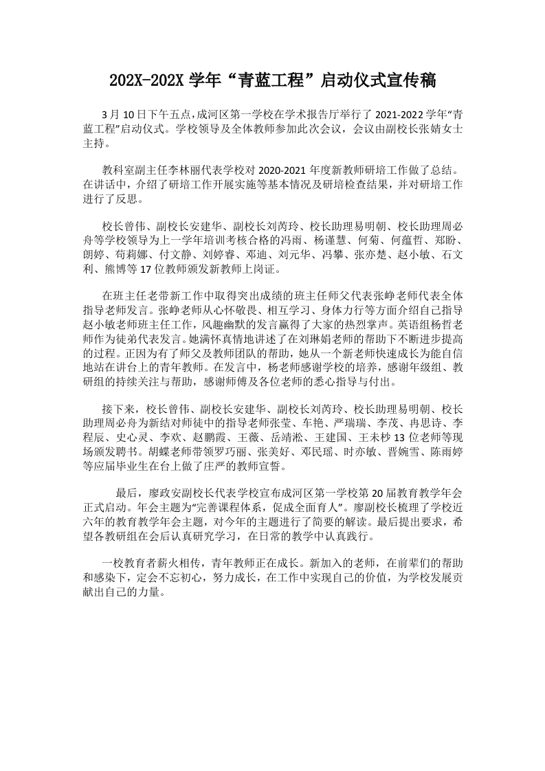 202X-202X学年“青蓝工程”启动仪式宣传稿此内容为免费资源,请登录后查看