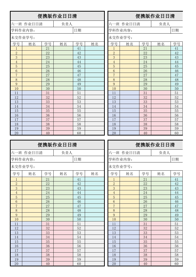 便携版作业日日清便携版作业日日清六一班作业日日清负责人六一班作业日日清负责人学科作业内容:日期学科作业内容:日期未交作业学号:未交作业学号:学号姓名学号姓名学号姓名学号姓名学号姓名学号12141121412224222242323433234342444424445254552545626466264672747727478284882848929499294910305010305011315111315112325212325213335313335314345414345415355515355516365616365617375717375718385818858193959193959204060204060便携版作业日日清便携版作业日日清六一班作业日日清负责人六一班作业日日清负责人学科作业内容:日期学科作业内容:日期未交作业学号:未交作业学号:学号姓名学号姓名学号姓名学号姓名学号姓名学号121411214122242222423234332343424444244452545525456264662646727477274782848828489294992949103050103050113151113151123252123252133353133353143454143454153555153555163656163656173757173757183858183858193959193959204060204060