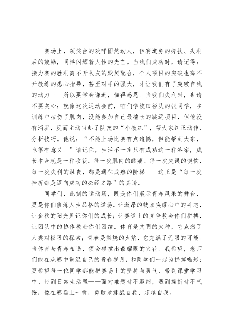 2025秋季运动会开幕式,校长讲话:以赛场为课堂,让挫折成为青春的勋章此内容为付费资源,请付费后查看