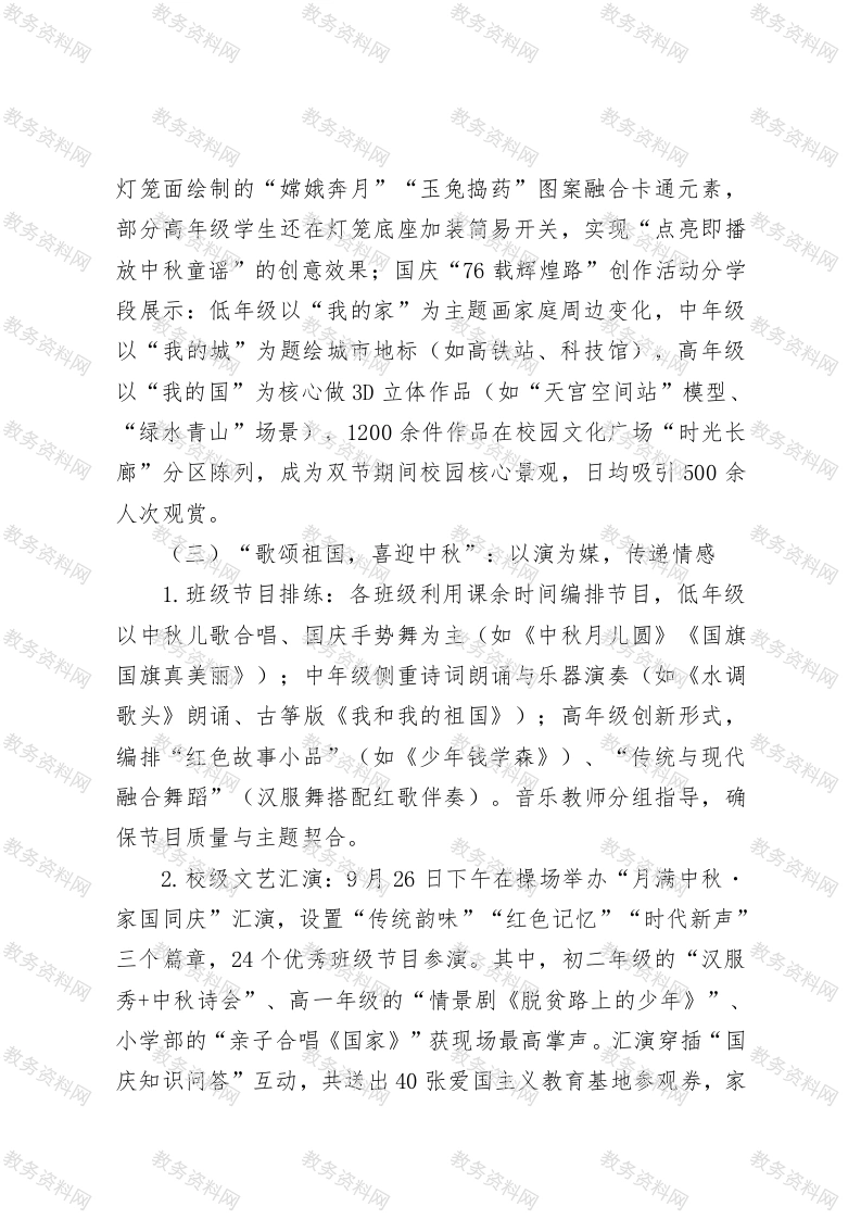 中小学2025年中秋国庆双节活动总结此内容为付费资源,请付费后查看