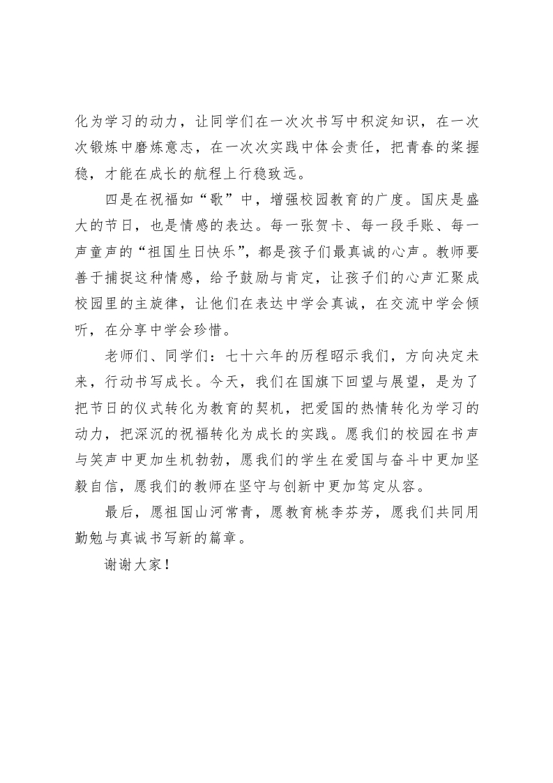 2025年国庆节教师讲话稿——七十六载春秋路,少年丹心映征途此内容为付费资源,请付费后查看