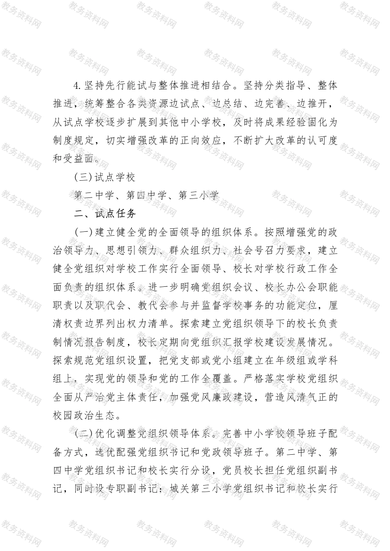 2025年中小学校党组织领导下的校长负责制试点工作实施方案此内容为付费资源,请付费后查看