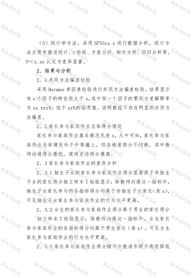 关于家长参与家庭作业对低年级小学生学习品质影响的调查报告此内容为付费资源,请付费后查看