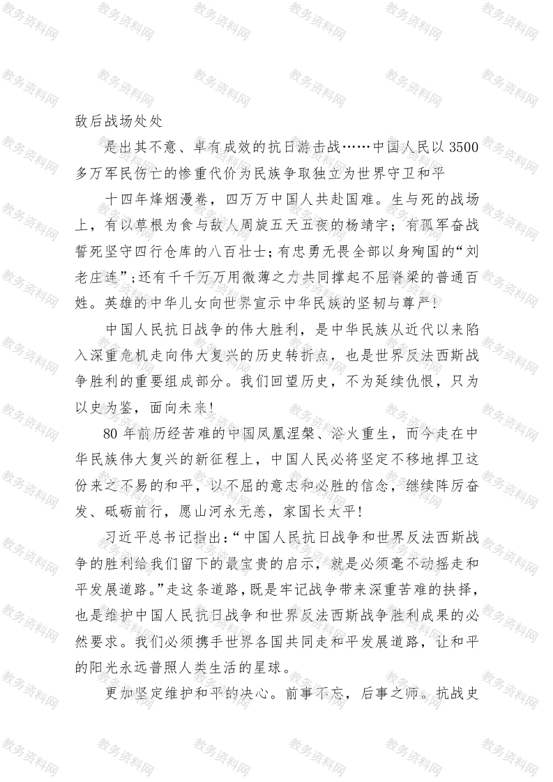 纪念中国人民抗日战争暨世界反法西斯战争胜利80周年心得体会此内容为付费资源,请付费后查看