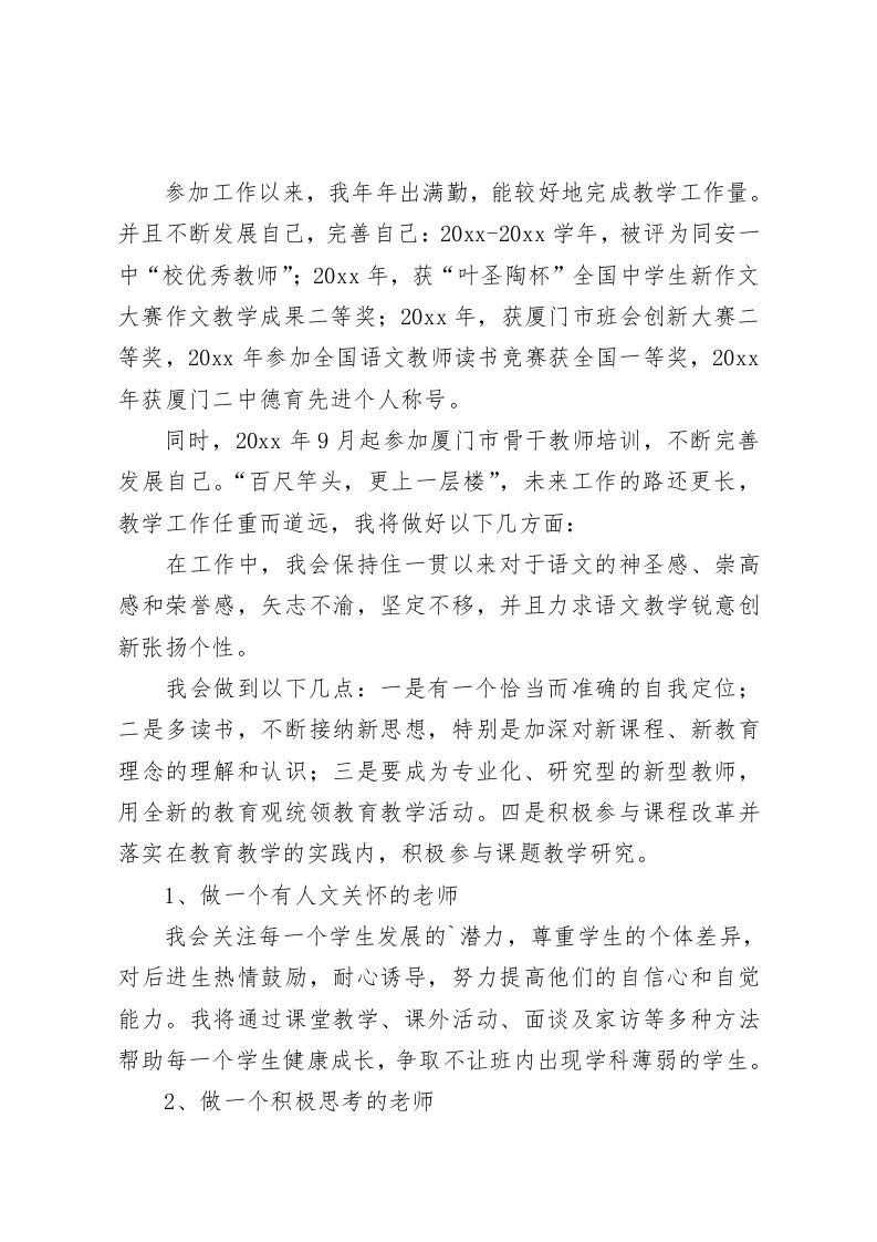 教师岗位竞聘报告5本人**,20xx年7月毕业于福建师范大学中文系汉语言文学教育专业,获得文学学士学位。20xx年3月被确认为中学一级教师。本人坚持四项基本原则,坚定正确的政治方向,关心国家大事,积极参加有益的政治活动和政治学习,遵纪守法,爱岗敬业,勤勤恳恳,扎实工作,不断加强自身道德修养,提高自身的业务水平。自20xx年任中学二级教师以来,本人一直担任两个班级的语文教学工作,具有扎实的专业理论知识和较为丰富的教学经验。在工作中,我始终保持着一种积极学习的心态,不断研究试题与考试变化,努力构建一套切实有效的教学模式。20xx年和20xx年两年担任高三教学工作,所任教班级成绩良好。任职期间,积极参加我校教研组组织的课题研究,一次为省级课题《开发利用本土资源探究学习语文》,一次为国家级课题《寄宿制背景下语文教学有效性研究》。20xx年1篇论文参与学校汇编。任现职以来,本人自20xx年9月至20xx年7月连续5年担任班主任,所任教班级积极参加学校组织的各项活动,多次取得好成绩,班风良好,班级成绩位列年级前列。20xx年9月起任高一语文备课组长,能协调好备课组内工作,完成学校各项任务。