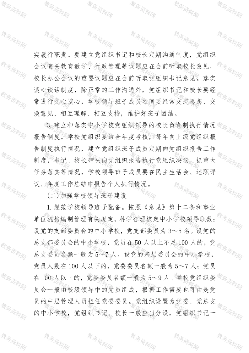 推进中小学校建立党组织领导的校长负责制实施方案此内容为付费资源,请付费后查看