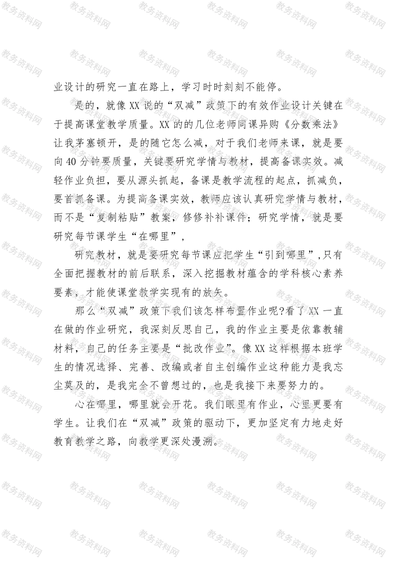 小学数学教师《“双减”政策下的有效作业设计》学习体会与感悟此内容为付费资源,请付费后查看