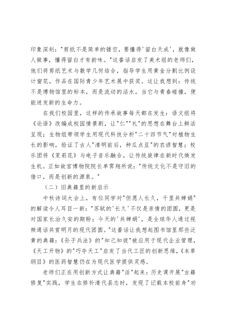 迎中秋庆国庆升旗仪式,校长讲话:三问三答里的家国情怀尊敬的老师们,亲爱的同学们:早上好!当晨曦中的五星红旗与天边的明月在苍穹交汇,当国庆的号角与中秋的桂香在校园交融,我们正站在一个特殊的时空坐标上一一这是新中国成立76周年的荣光时刻,也是中华民族又一个团圆佳节的温馨时分。今天,我想以三个问题与大家共同思考:当月饼的甜遇见国旗的红,我们如何读懂"家国”二字的分量?当千年的月光照亮复兴的征程,青年一代该如何接过文明的火种?当个人的梦想融入时代的洪流,我们又该以怎样的姿态奔赴未来?让我们在双节同辉的晨光中,共同寻找属于新时代师生的答案。一、一问家国:从月饼里的团圆到国旗上的信仰(一)一块月饼的文化密码中秋的月光下,总有一块月饼连接着过去与现在。记得小时候,祖母会把月饼切成八等份,寓意”八方团圆”,而父亲总在分月饼时说:"这酥皮要层层起酥,就像咱中国人的日子,要过得有层次、有滋味。"去年学校组织的”月饼DIY"活动中,有位同学在月饼上刻下"五星"图案,他说:"想让团圆的甜里,多一份国旗的红。"这个创意让我想起故宫博物院藏的"清代中秋月饼模”,那些刻着"国泰民安"的纹样,不正是古人"家国同圆"