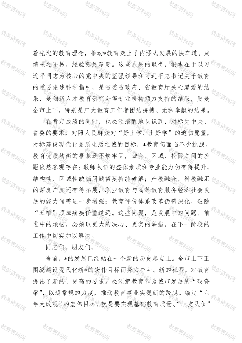 在全市2025年教育创新发展大会上的讲话此内容为付费资源,请付费后查看