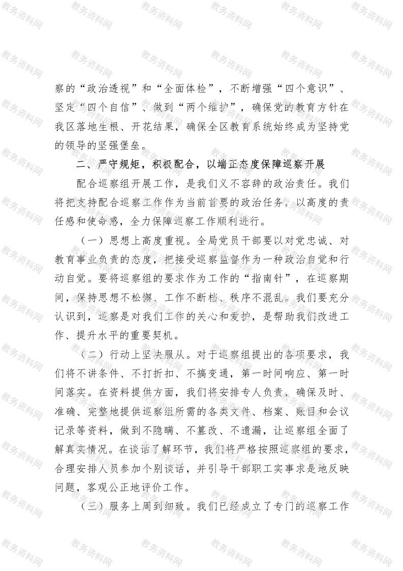 在2025年区委巡察区教育局党委工作动员会上的表态发言此内容为付费资源,请付费后查看