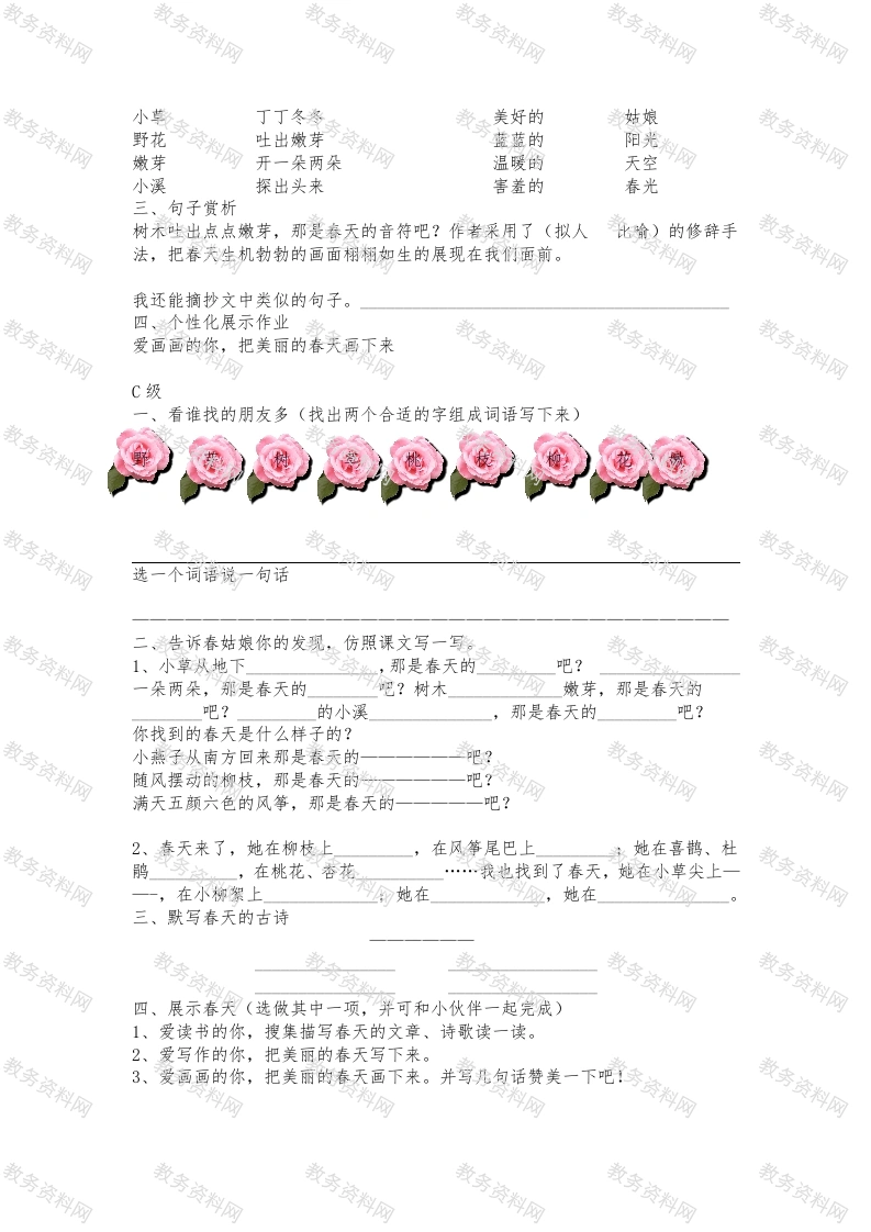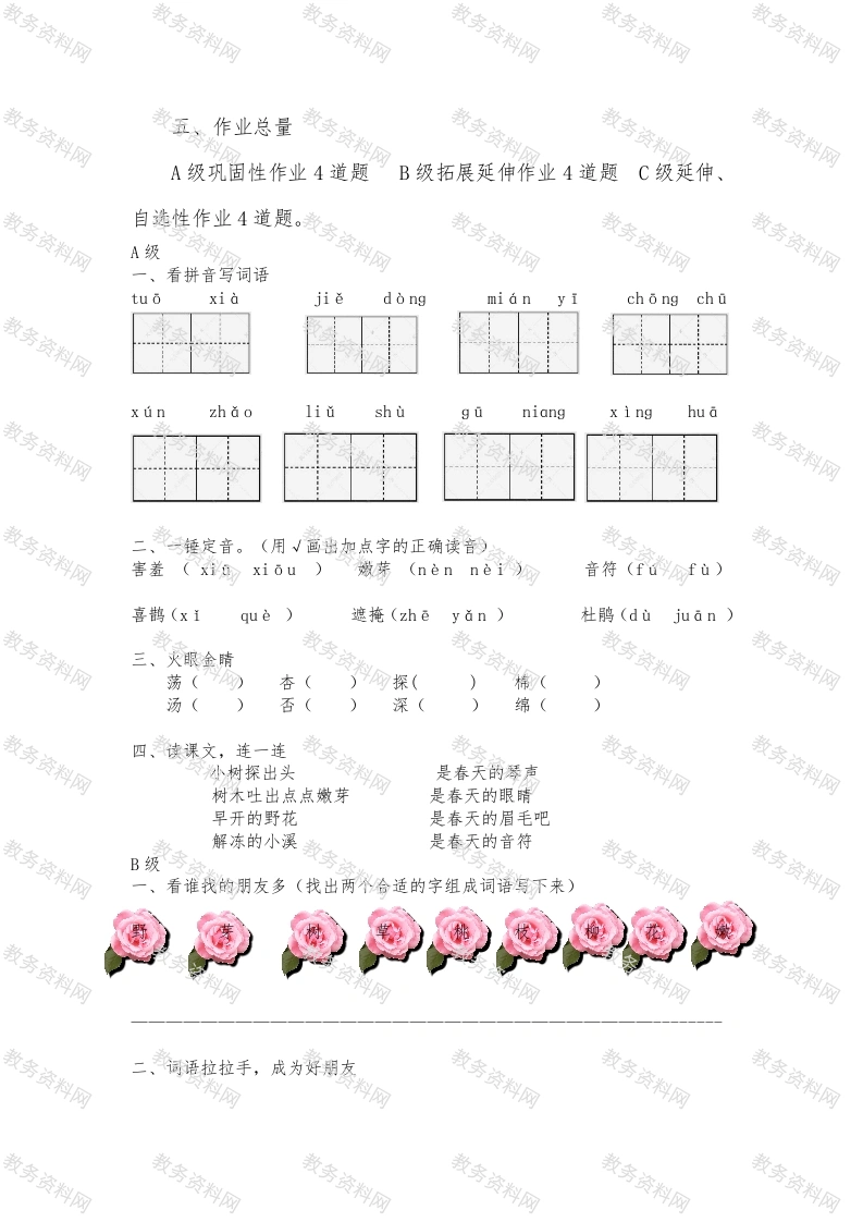 “双减”小学语文《找春天》优秀作业设计此内容为付费资源,请付费后查看