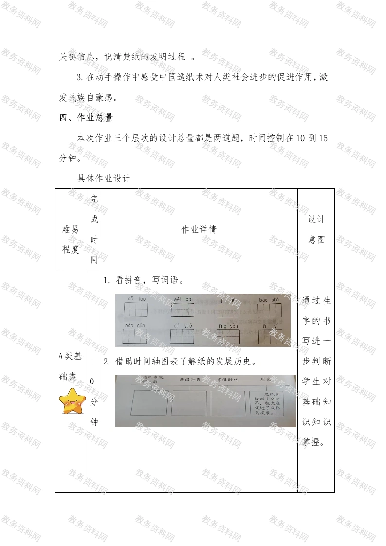“双减”小学语文《纸的发明》优秀作业设计此内容为付费资源,请付费后查看