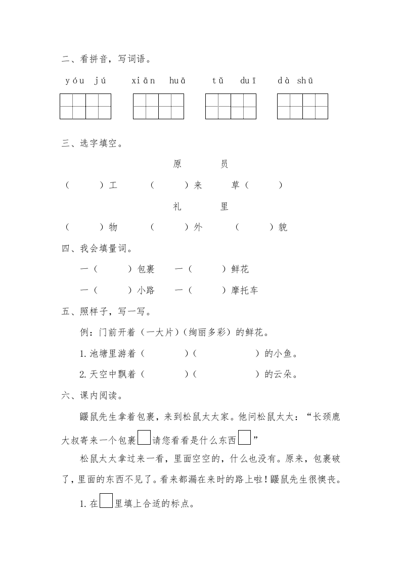 二年级语文《开满鲜花的小路》作业设计一、教材分析:这篇课文是一则美丽的童话故事。它告诉我美好的事物才是最好的礼物。教育学生要共享快乐,为身边的人送去快乐和幸福,自己会得到更多的快乐和幸福。二、学情分析:在本课的学习中本班学生在拼音、认字方面参差不齐,口语表达方面存在很大问题,比如表达混乱,句子不完整等。三、作业结构:结合本班学生的认知情况,遵循低年级多说少些的原则,我设计了找错误读音、选字组词、根据例句能说出生动的句子,第四题的说一说共设计了三个问题,我希望这几个问题只是起到一个提示的作用,能够说出一段通顺的话,提高表达能力是我要求达到的最终目的。四、作业总量:根据我班学生对这一课知识的掌握情况,我共设计了四道大题,做到查漏补缺。具体作业设计一、给下列字选择正确的读音,连线。xu a n1òuwèidiji漏绚递寄猾