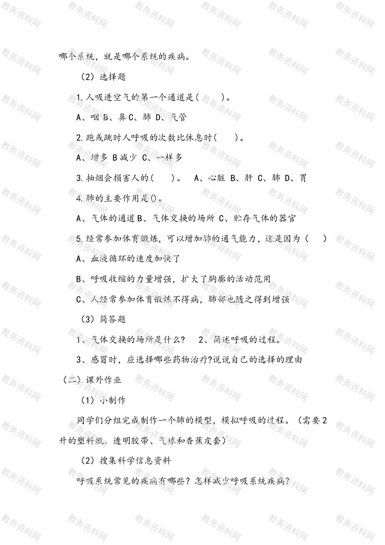 小学科学《呼吸与交换》优秀作业设计此内容为付费资源,请付费后查看
