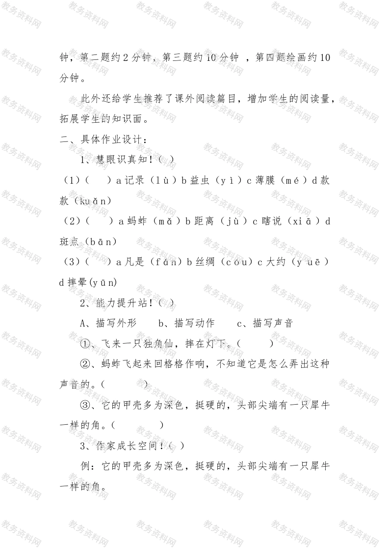 小学语文《昆虫备忘录》优秀作业设计此内容为付费资源,请付费后查看