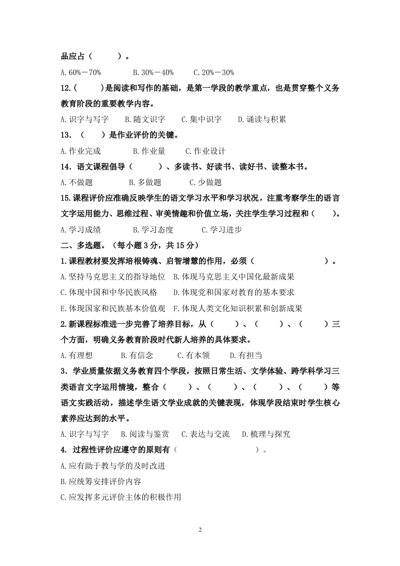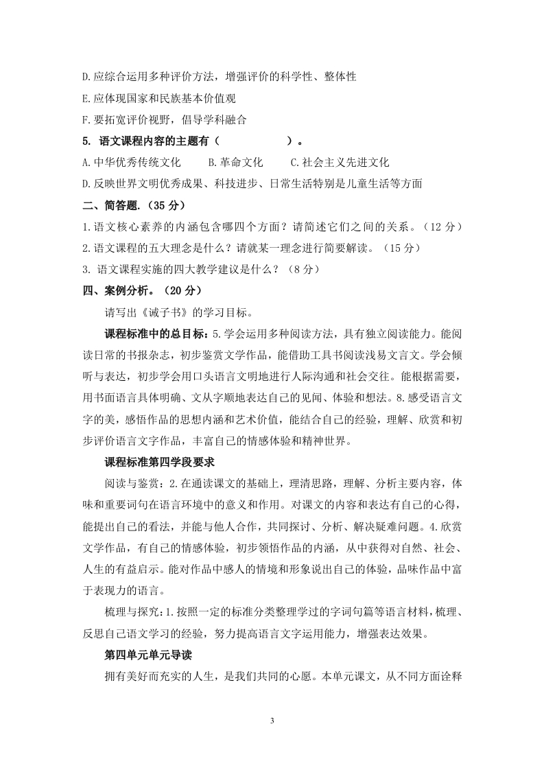 义务教育语文课程标准(2022版)模拟试题此内容为付费资源,请付费后查看