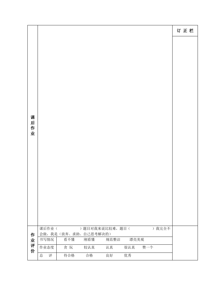 作业设计模板tangqi888小时前发布关注私信43.50KB2页0468 第1页 / 共2页 第2页 / 共2页 已完成全部阅读,共2页 作业设计模板此内容为付费资源,请付费后查看¥9.9¥19.9VIP会员免费立即购买您当前未登录!建议登陆后购买,可保存购买订单付费资源© 版权声明本站是一个信息分享及获取的平台,不确保部分用户上传资料的来源及知识产权归属,资料由老师投稿,公开渠道整理,网友上传,如果侵犯到您的权益,请联系客服删除THE END教师资料班主任资料 文本预览 人教版小学数学二年级上册作业设计学生姓名课题级学习目标题目呈现自我评价我喜欢完成题目(因为:课前作业我觉得题目比较难,因为:1、我可以独立完成的题目有(题目(是我和同学课中作业讨论或听老师讲解后能完成的:我认为题目()对我帮助最大 查看更多 收起部分 喜欢就支持一下吧点赞8 分享QQ空间微博QQ好友海报分享复制链接收藏