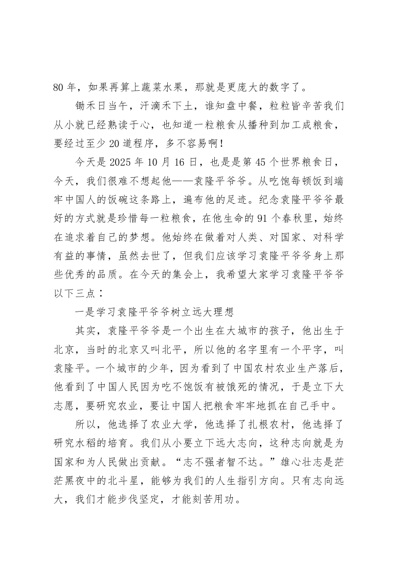 第45个世界粮食日,校长在国旗下精彩讲话此内容为付费资源,请付费后查看
