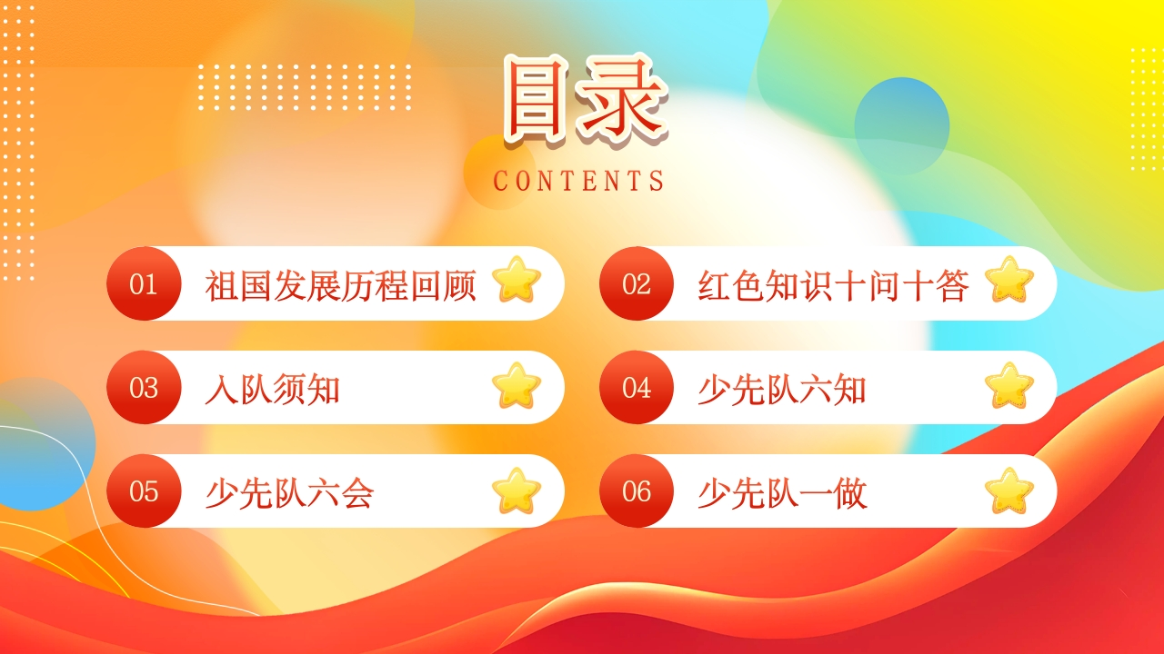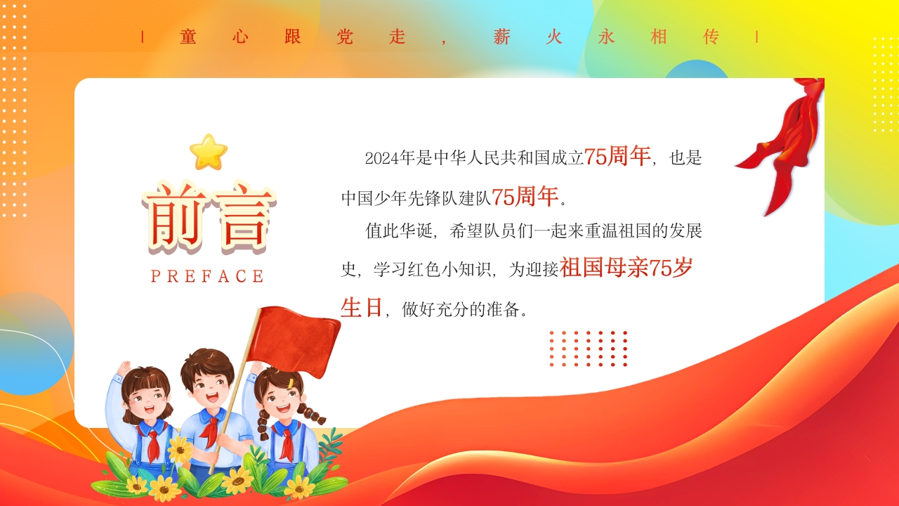21.少先队知识PPT模板tangqi882小时前发布关注私信45.90MB31页02415 第1页 / 共31页 第2页 / 共31页 第3页 / 共31页 试读已结束,还剩28页,您可下载完整版后进行离线阅读 21.少先队知识PPT模板此内容为付费资源,请付费后查看¥9.9¥19.9VIP会员免费立即购买您当前未登录!建议登陆后购买,可保存购买订单付费资源© 版权声明本站是一个信息分享及获取的平台,不确保部分用户上传资料的来源及知识产权归属,资料由老师投稿,公开渠道整理,网友上传,如果侵犯到您的权益,请联系客服删除THE END少队资料德育资料 文本预览 。学少先知识做先锋少年1童心跟党走,薪火永相传姓名:某某某班级:XX班?少先队员 查看更多 收起部分 喜欢就支持一下吧点赞15 分享QQ空间微博QQ好友海报分享复制链接收藏