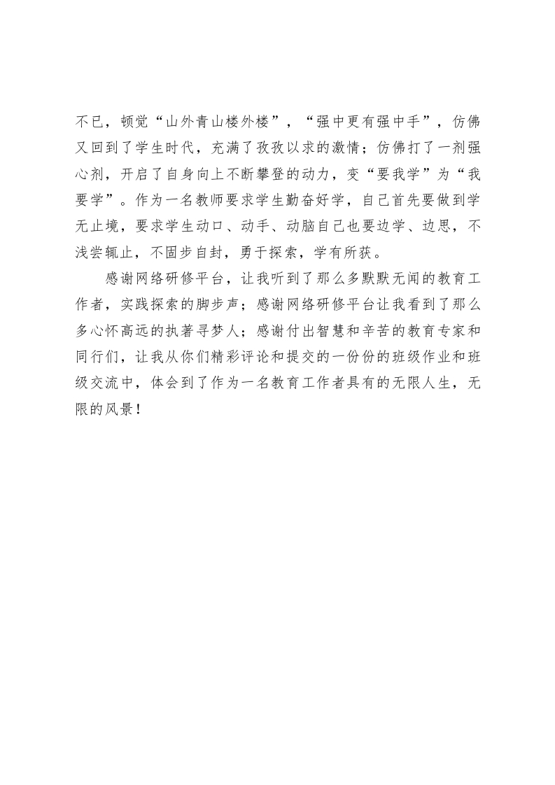 2025教师研修培训心得体会远程研修平台像一架云梯,让我能不断地向上攀登自从参加远程网络研修以来,我在教育教学理论知识方面,经历了迷茫懵懂、渐呈清晰到教学观念上有了较大的提升,可以说研修平台像一扇窗口,让我眼界更加宽广,教学思路更加清晰。感谢远程研修平台。首先,远程研修开辟了一条普通教师与全国知名教育专家,紧密接触的通道。我可以随时聆听专家的讲座,领略专家科学的教育理论和先进的教学方法,耳目一新,百听不厌,从根本上转变了教育观念。在工作中,使我能够再遇到与讲座中类以的、或其它棘手的问题时,学会理性的思考和冷静地处理问题的方式。其次,远程研修为学员搭建了广阔的交流平台。以前专家传经送宝,或教师学习交流要“走出去,请进来”颇费一番周折,也难于满足到各地学习的强烈需求。如今却是”一桥飞架南北,天堑变通图”!网上研修,一下子缩短了地域之间的距离,改变了时空之间的连线,我可以十分便捷地在网上学习、交流,和众多的学友虽不“面对面”却已“心连心”,真可谓为是,妙不可言,乐在其中“欲穷干里目,更上一层楼”。远程研修平台像一架云梯,让我能不断地向上攀登。看到了有那么多的学员文笔流畅,才思敏捷,学识渊博像磁石一样吸引了我,令我感慨万干,羡慕