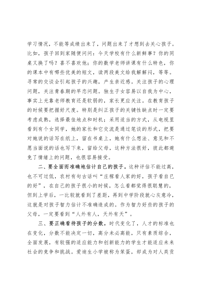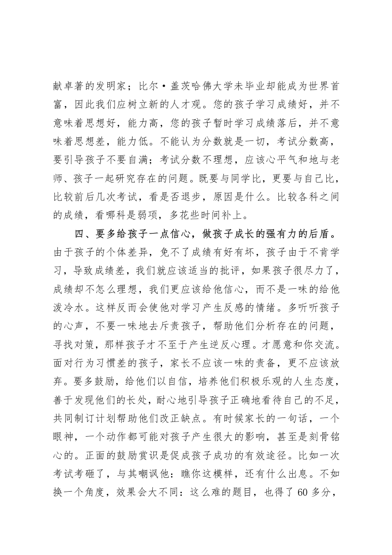 初二年级家长会上,副校长讲话我们的孩子已经熟悉了学校的一切,失去了对初中生活的好奇与向往各位家长大家好!首先对各位家长能按时参加家长会表示衷心的感谢!我主要就学生的教育培养与各位家长进行交流并给家长提几点建议初二年级是极其重要的一个学习阶段,我们的孩子已经熟悉了学校的一切,失去了对初中生活的好奇与向往,他们认为自己已长大,自以为是,不希望别人多管束,然而这又是青春期,心理发育的重要阶段,学生处于一种盲目自信的阶段,做事、学习凭兴趣,凭心情,逆反心理更强,甚至有的专门和家长与老师作对,以此显示自我个性。这一学年又是关键的一年,抓住八年级,即抓住了初三,意味着学生将迈向人生的一个新的台阶。这次家长会主要目的是希望家长多了解孩子的在校表现,加强你们和学校之间的联系,希望家长进一步配合老师,做好一些工作,让孩子们学得更好,取得更好的成绩!一、要掌握孩子特点。有的放矢的进行教育,在教育上更应讲究方式方法,态度不能粗暴,语言不能过激。家长要尽量抽时间与孩子们在一起,经常与孩子沟通,学会平等地与孩子一起看待他们成长中遇到的问题。平时要和孩子多交流,询问