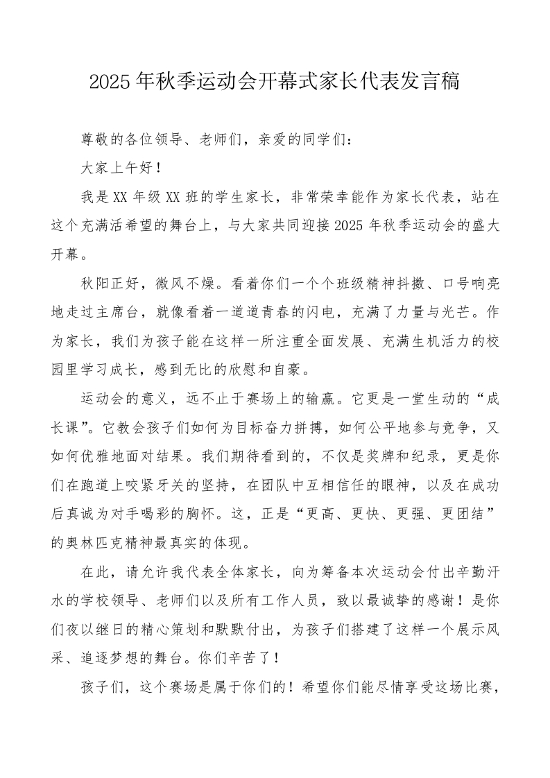 9.2025年秋季运动会开幕式家长代表发言稿此内容为付费资源,请付费后查看
