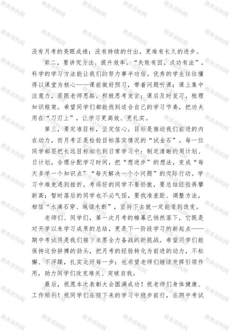 校长在第一次月考优秀学生表彰大会上发言此内容为付费资源,请付费后查看