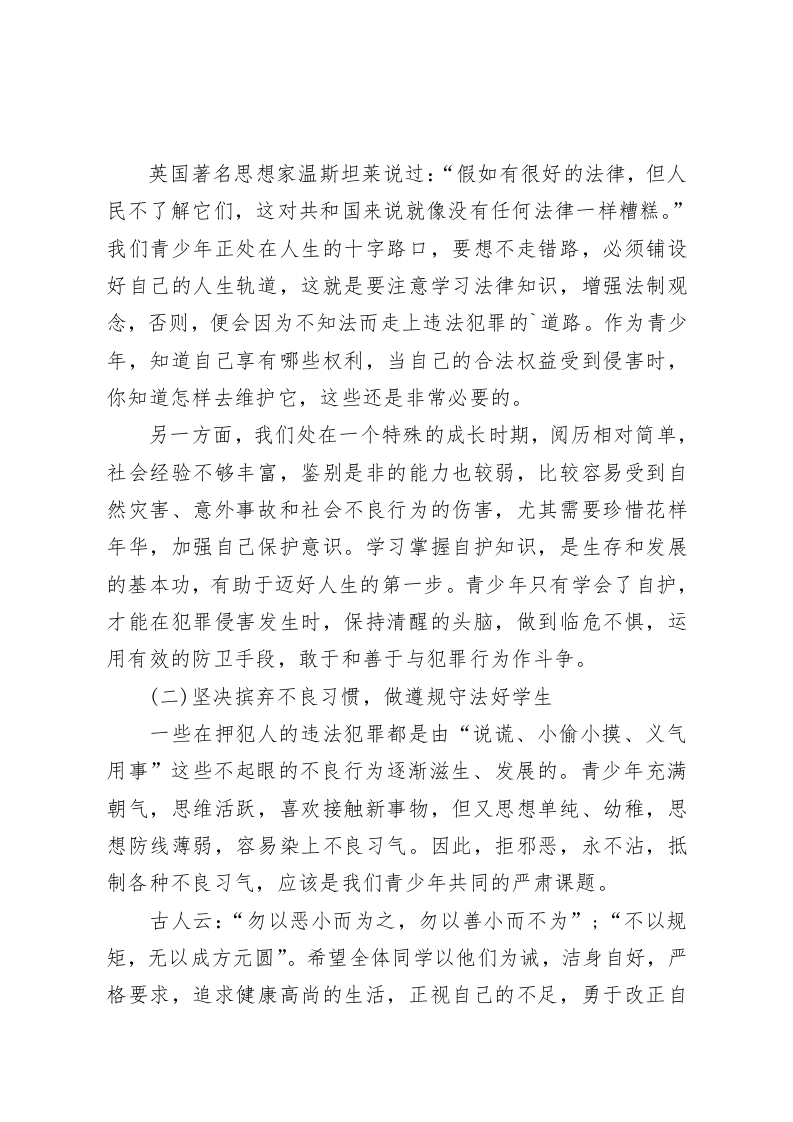 法制课进校园,校长讲话无知才会妄为,无知才会导致悲剧此内容为付费资源,请付费后查看
