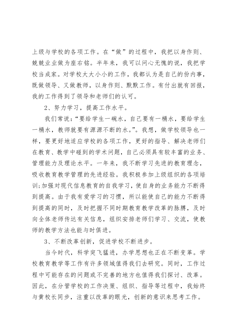 分管教学副校长讲话,以身作则是做好工作的基础我担任副校长一职,协助校长抓全面工作。本学期,在上级教育部门的领导下,我尽职尽责,积极协助黄瑞校长以身作则带领全体教职工努力工作,基本完成本学期的工作目标。下面对我这半年来的工作思路和做过的工作进行汇报。一、政治思想我作为一名副校长,如何踏踏实实的履行自己的职责,不辜负上级对我的期望,使我的工作得到师生们的认可,这是我经常思考的问题,同时也深感身上的担子不轻。为更好完成工作。我在政治思想上积极要求上进,以一个共产党员的标准严格要求自己,坚持认真看书学习,关心国家大事,不断提高自身的政治理论素养。工作中,全面贯彻执行党的教育方针,认真落实上级教育部门的各项方针、政策,积极利用学到的政治理论指导自己的实践,使自己在学习与工作中不断提高工作水平。二、工作思路及体会在学校分配的各项工作中,我一直严格要求自己。今年的工作,又有了更深的认识。1、以身作则是做好工作的基础从担任副校长那天开始,我就牢牢记住:各项工作要以身作则,既要做指挥员,同时又要做“士兵”。我踏踏实实地落实