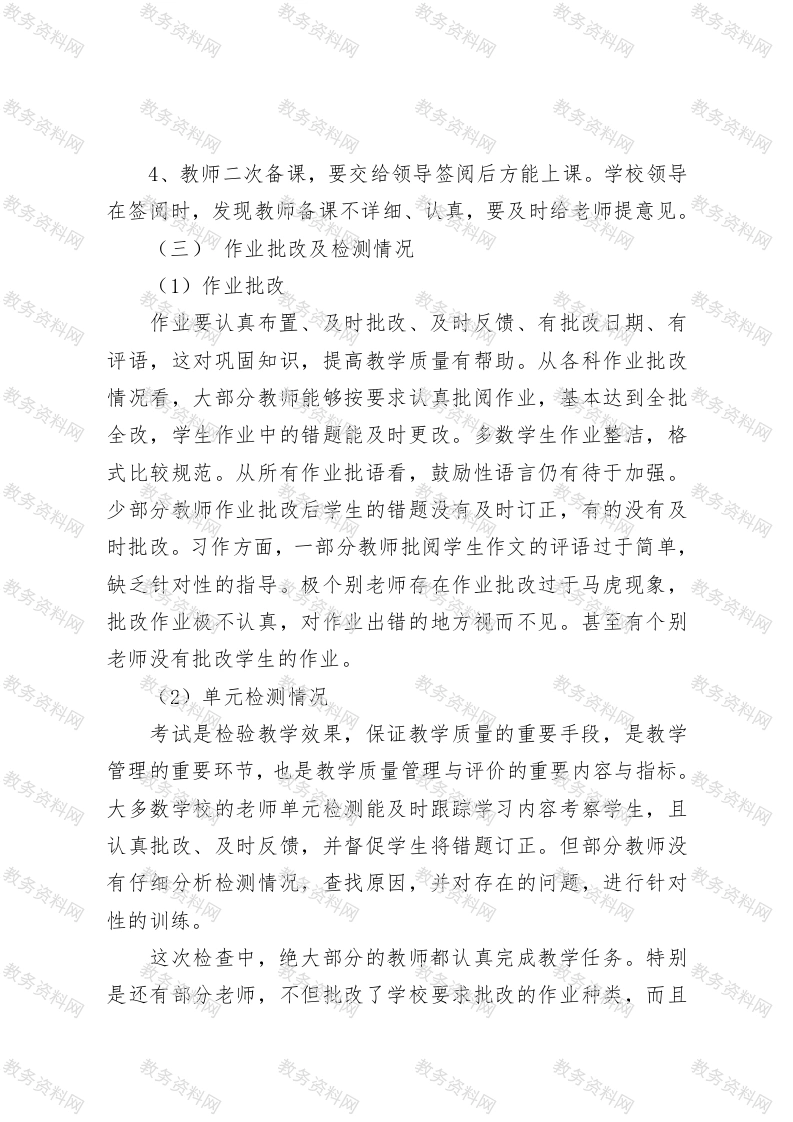 副校长在教学常规检查后发言主要检查备课情况、作业批改情况、单元检测、听课情况此内容为付费资源,请付费后查看
