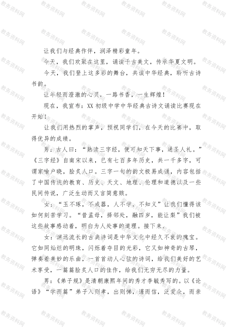 古诗文诵读比赛主持辞此内容为付费资源,请付费后查看