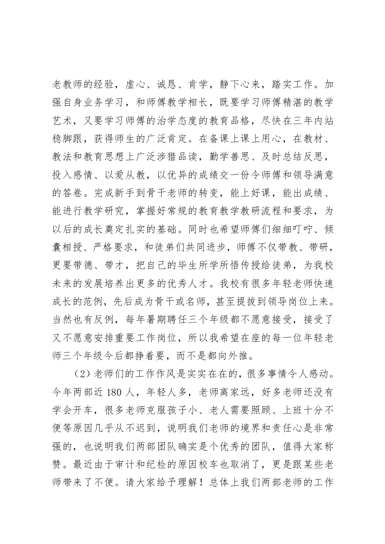 高一第一次月考总结分析会议上,校长讲话把自己的工作做的更好更扎实老师们:刚才xx主任宣读了我校青蓝工程实施方案以及师徒结对名单,Xx主任进行了月考分析总结,两位结对师徒教师代表又进行了表态发言。下面我想讲两点。一是工作肯定,二是工作要求。一、前段时间的工作是值得肯定的,有三大亮点。(1)年轻老师表现出了良好素养和工作激情,进步很快。他们工作积极主动,认真备课,有些老师仅听课记录就已经有两三本,甚至三四本。他们善于虚心学习,教学常规掌握的很好,赢得学校的好感和肯定,取得了较大的进步,基本站稳了脚跟。最近我听了40多位老师的课,虽然大都是青年教师的课,但我发现他们的工作学校是满意的,他们的表现也是令人欣慰,值得学校放心!很多年轻老师课准备的很用心,课堂设计也很规范,对待工作的热情也很高,值得表扬。很多老师在如何备好课,如何上好课,如何进行作业批改检查,如何进行互动教学,如何设计课堂教学环节,如何提高教育教学质量等常规环节落实方面善于学习,积极借鉴,取长补短,修正自己的不足,狠下功夫,长进很大。这里青年教师的进步既有本人的努力,也有带教老师的辛勤付出。今天我们把这项师徒带教的形式以学校的名义进行制度化要求,希望青年老师们一定要好好学习