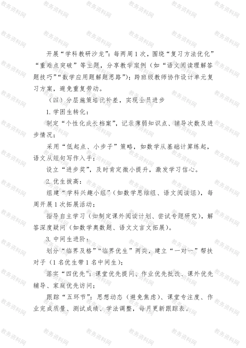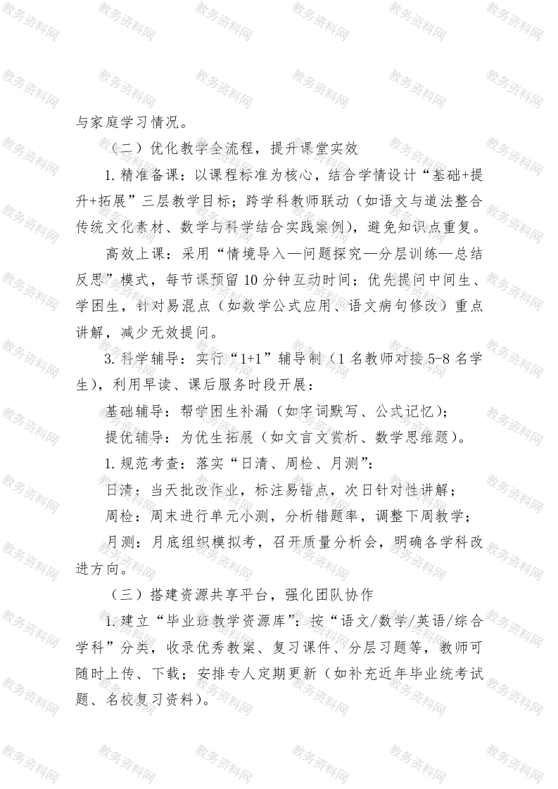 小学六年级毕业班教学质量提升实施方案此内容为付费资源,请付费后查看
