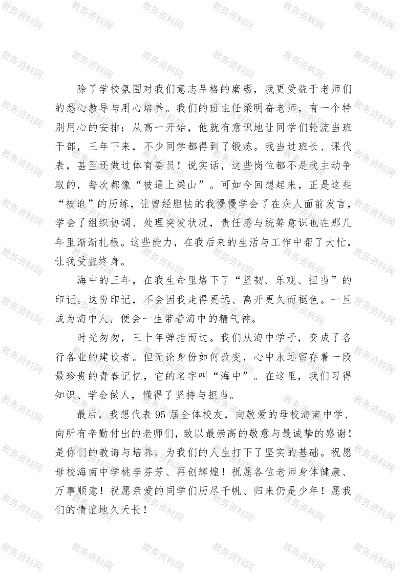 在毕业30周年返校庆典上的发言此内容为付费资源,请付费后查看