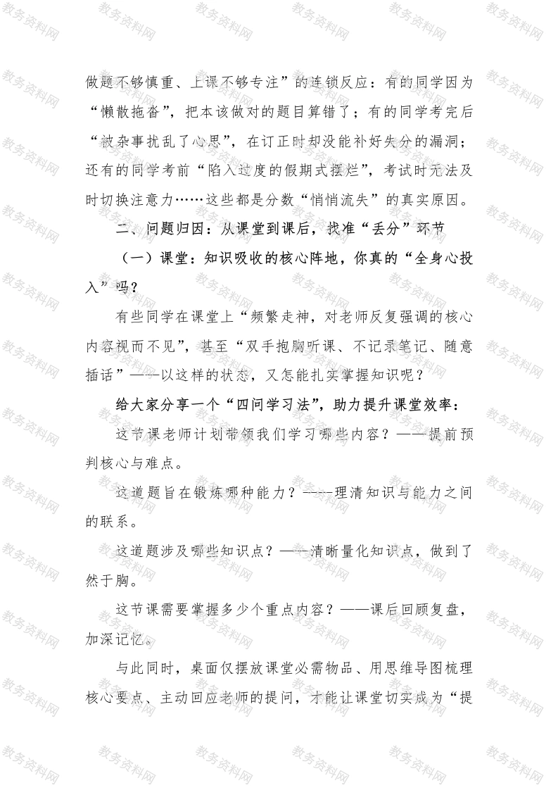 分数去哪了——2025年月考后主题班会班主任发言稿此内容为免费资源,请登录后查看