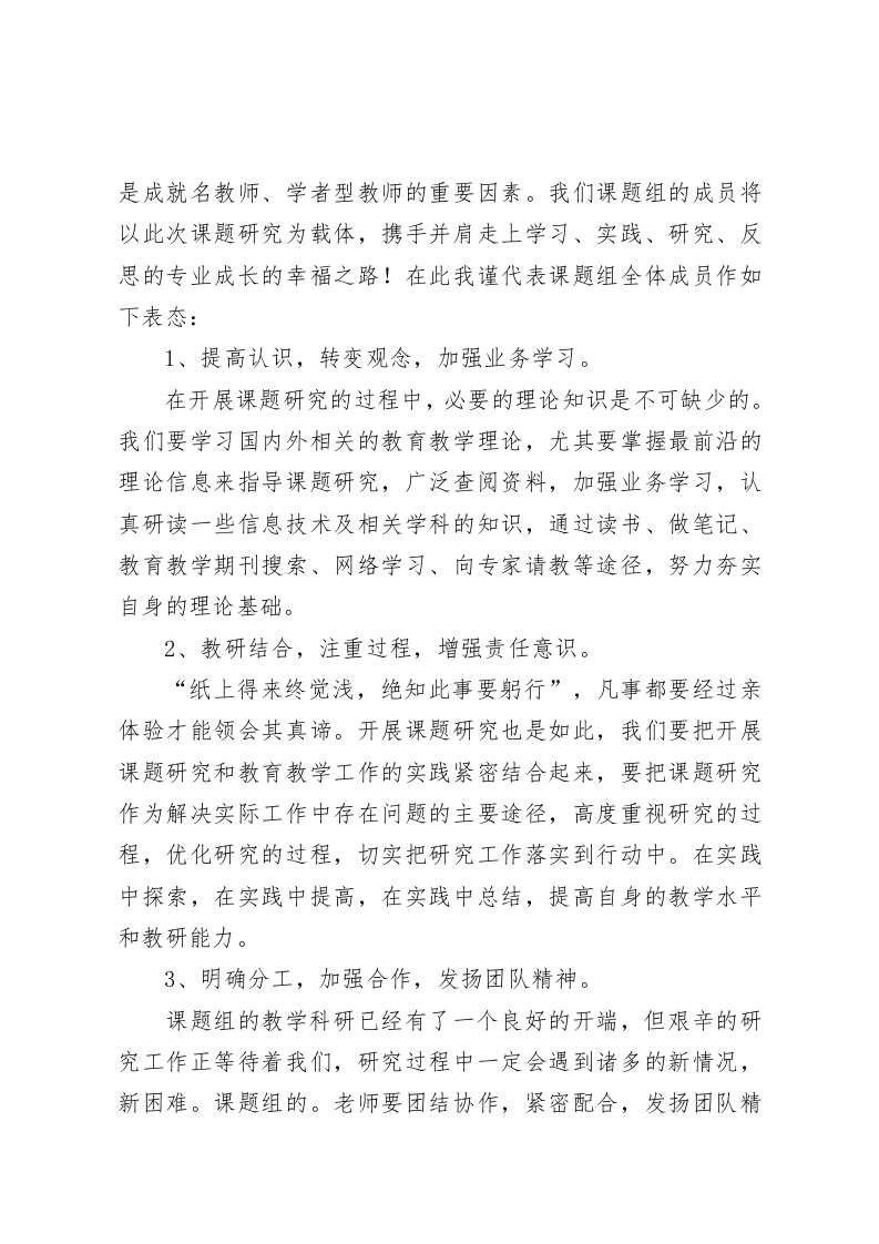 课题开题会上,校长讲话教育科研是学校发展的第一推动力,是教师成长的源头活水,是成就名教师、学者型教师的重要因素尊敬的各位领导、老师:大家好!今天我们在这里隆重举行课题开题会,我谨代表课题组全体成员对各位专家、领导和各位老师的到来表示热烈的欢迎和衷心的感谢!当前学生普遍存在被动接受知识,缺乏主动学习的意识,学习效率不高,潜能得不到应有的开发。为此我们xx组确立了《xx深度融合的研究》这一课题进行研究,本课题的研究目的在于唤醒、发掘与提升学生的潜能,促进学生的自主发展;促进学生认知、情感、态度与价值观等方面的和谐发展:关注学生的终身学习的愿望和能力的形成,促进学生的可持续发展。期待通过这一课题的研究,逐步把学生的被动学习转变为自主、合作、探究学习,形成一些可操作的实践原则、方式及手段,不仅可以找到提高学生学习兴趣、提高课堂学习效率的教学方法,还可以提高教师的理论水平和教科研能力。苏霍姆林斯基说过:“如果你想让教师的劳动能够给教师带来乐趣,使天天上课不至于变成一种单调乏味的任务,那你就应当引导教师,走上从事一些研究的这条幸福的道路上。”教育科研是学校发展的第一推动力,是教师成长的源头活水,