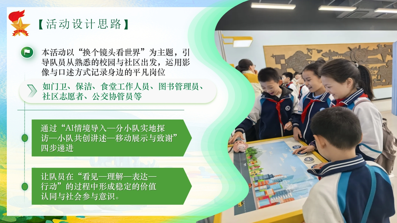 换个镜头看世界——少先队活动课pptxtangqi88前天发布关注私信0.15GB17页05112 第1页 / 共17页 第2页 / 共17页 第3页 / 共17页 试读已结束,还剩14页,您可下载完整版后进行离线阅读 换个镜头看世界——少先队活动课pptx此内容为付费资源,请付费后查看¥9.9¥19.9VIP会员免费立即购买您当前未登录!建议登陆后购买,可保存购买订单付费资源© 版权声明本站是一个信息分享及获取的平台,不确保部分用户上传资料的来源及知识产权归属,资料由老师投稿,公开渠道整理,网友上传,如果侵犯到您的权益,请联系客服删除THE END少队资料德育资料 文本预览 个镜铁世界》》》少先队活动课设计范例《《汇报人夏夏老师时间XXX 查看更多 收起部分 喜欢就支持一下吧点赞12 分享QQ空间微博QQ好友海报分享复制链接收藏
