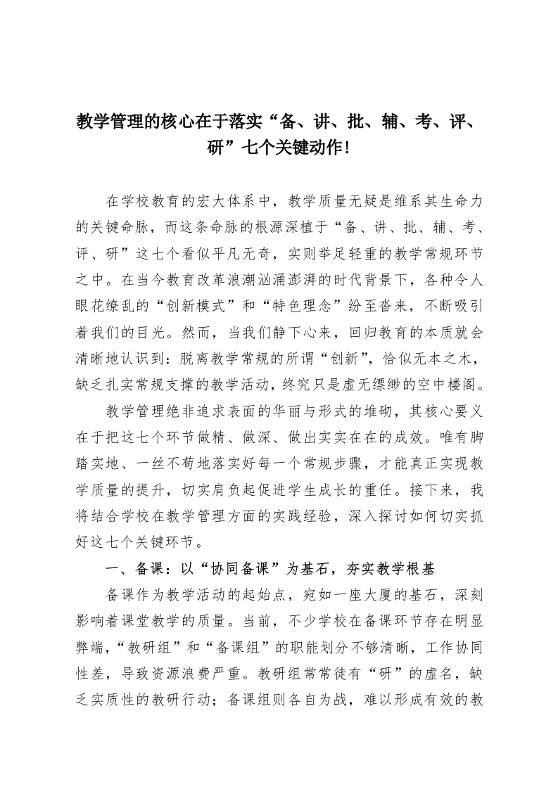 教学管理的核心在于落实“备、讲、批、辅、考、评、研”七个关键动作!此内容为付费资源,请付费后查看