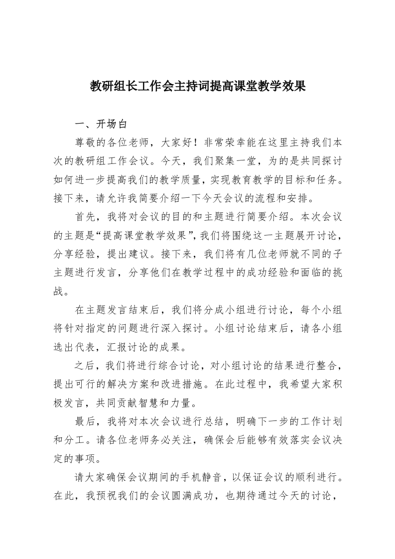 教研组长工作会主持词提高课堂教学效果此内容为付费资源,请付费后查看