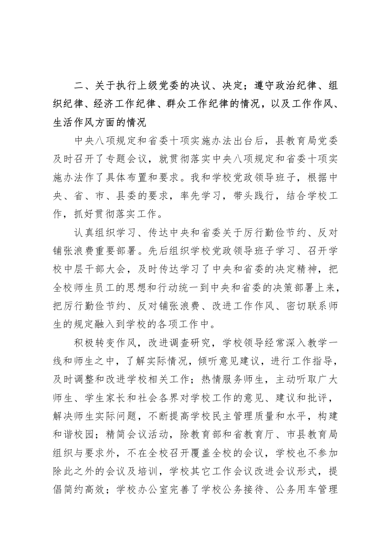 廉政谈话,校长表态发言面对诱惑和考验,我们的信念不能动摇,心志不能迷乱,纵然门庭若市,也要心静如水,共同砥砺品行,坚守清廉尊敬的各位领导,各位老师:根据领导干部廉洁从政有关规定,今天在这里进行廉政谈话。主要汇报以下几点内容:一、关于贯彻执行党的路线、方针、政策的情况我对党的信仰是朴素的、自觉的、坚定的。自己是在党的阳光、雨露下成长的,从小接受的就是“没有共产党,就没有新中国”的熏陶与教育,接受高等教育后,系统地学习了马克思主义理论和中国共产党历史,对党的认识由朴素的感受者变为自觉的追求者、捍卫者,自己能有今天,与党的教育、培养不可分。自己对党挚爱的情感是真实的、忠诚的,对党的信仰是执着的、坚定的,对党的路线、方针、政策的贯彻执行是坚决的、不折不扣的。我作为一名共产党员、教师、教育工作者、中学校长,时刻牢记党的宗旨和历史使命,把党的教育方针贯彻到学校的各项工作中,渗透到培育青年学生的德育工作中,积极构建学校“大德育”教育体系和平台;坚定不移地贯彻落实中央和上级党组织的各项工作布置;与学校班子成员一道,团结学校广大师生员工,在学校的各项具体工作中,带头执行好党的民主集中制和廉洁从政规定,着力建设好平安校园、和谐校园。