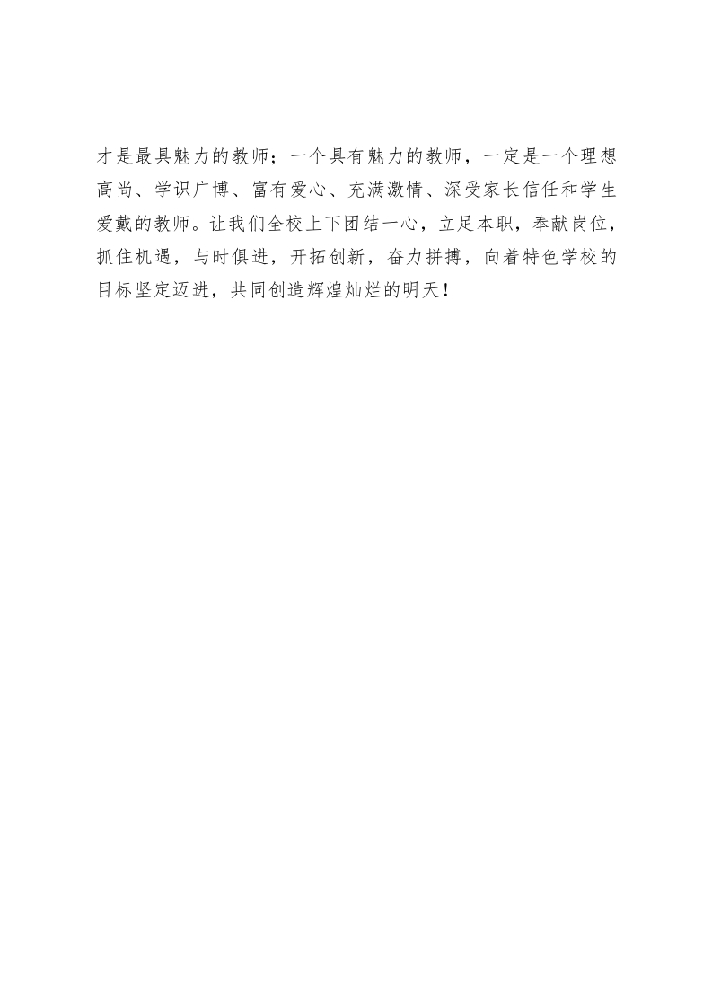师德演讲比赛结束后,校长总结讲话用自己的实际行动来做好太阳底下最光辉的事业各位老师:我校举办的“我是最美乡村教师”师德演讲比赛圆满结束了。本次演讲比赛,进一步弘扬了正气,促进了师德建设,极大地提升了教师的整体素质,充分展示了我校教师的靓丽风采。参赛教师紧紧围绕“讲师德、正师风、强素质、树形象”的主题,结合自己的工作感想和个人体会,以及身边感人的故事,以充实的内容、饱满的激情、生动的语言,讲述了自己对师德的感悟。参赛教师从不同角度、各个方面,演绎者我校教师一一把爱与责任贯穿教育始终的师德风貌;把爱的阳光播撒给每个学生的奉献精神。他们用自己的热情和思考,诠释了作为一名教师的自豪和发自内心的快乐,他们借演讲比赛这个平台,用感人至深的事例和发人深思的哲理,让我们感悟着教育的魅力。借这次演讲比赛的东风,老师们一定会更加扎实地做好本职工作,把全部的爱献给教育事业,献给我们的学校,献给我们的学生。我们要进一步抓好学校的师德师风建设,营造讲师德、比奉献、学先进、促发展的良好局面,使每一位教师都真正肩负起教师育人的重任,用自己的实际行动来做好太阳底下最光辉的事业。师德是学校之魂,教师之魂,一个具有高尚师德的教师,