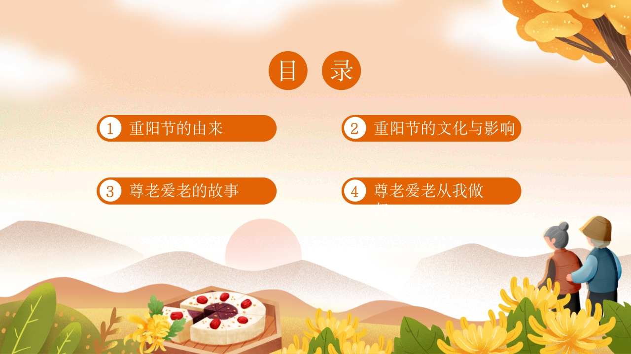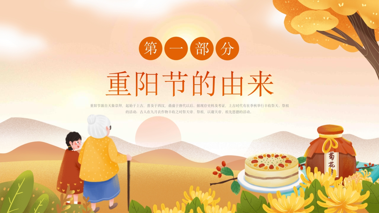 重阳节主题PPT1tangqi8814天前发布关注私信3.72MB19页02311 第1页 / 共19页 第2页 / 共19页 第3页 / 共19页 试读已结束,还剩16页,您可下载完整版后进行离线阅读 重阳节主题PPT1此内容为付费资源,请付费后查看¥9.9¥19.9VIP会员免费立即购买您当前未登录!建议登陆后购买,可保存购买订单付费资源© 版权声明本站是一个信息分享及获取的平台,不确保部分用户上传资料的来源及知识产权归属,资料由老师投稿,公开渠道整理,网友上传,如果侵犯到您的权益,请联系客服删除THE END学校教务德育资料方案计划 文本预览 九九重阳节浓浓敬老情举杯庆重阳九九桂糕香重阳节源自天象崇拜,起始于上古,普及于西汉,鼎盛于唐代以后。据现存史料及考证,上古时代有在季秋举行丰收祭天、祭祖的活动:古人在九月农作物丰收之时祭天帝、祭祖,以谢天帝、祖先恩德的活动 查看更多 收起部分 喜欢就支持一下吧点赞11 分享QQ空间微博QQ好友海报分享复制链接收藏