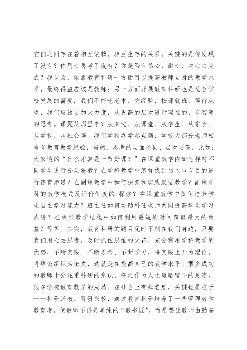 校长教育科研经验交流会上发言希望老师们转变观念、提升自我、培养能力,以科研领先,积极投入到学校的教育改革中此内容为付费资源,请付费后查看