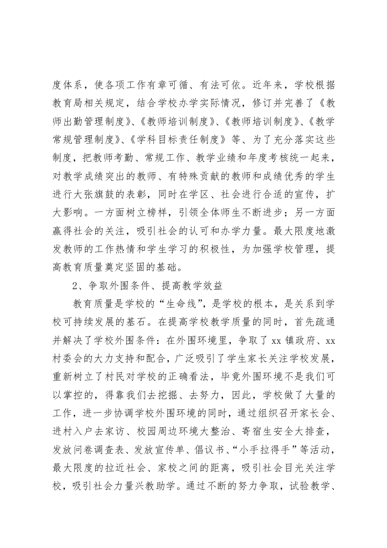 校长论坛发言加强学校管理,提高教育质量尊敬的各位领导、各位同仁:大家早上好!非常感谢县教研室组织这次论坛,给予我们一个这样难得的学习机会,也十分感谢各位校长能无私分享各自成功的办学经验。带着学习、交流的心愿,与各位领导、校长一起来谈谈我校就加强学校管理,提高教育质量的一些做法、存在的困惑和今后的打算。一、基本情况:xx镇中心小学是一所寄宿制完全小学,现有14个教学班,学生654名,在职教师42名。近年来,通过全体师生的不断努力,学校工作取得了一定进步,但与县教育局和教研室的要求相比,还有存在一定的不足,与全县兄弟学校相比,还有一定的差距。二、学校工作近年来,在全体师生的共同努力下,学校各项工作均有起色,在不同程度上都有所进步,为了进一步巩固成绩,加强学校管理、提高教育质量,争取学校的正规化建设良好发展,主要从以下四个方面开展工作:1、强化制度建设,实现依法治校没有规矩,不成方圆,要管理好一所学校,实现学校的可持续发展和正规化建设,一定要有一套切合学校发展实际的制