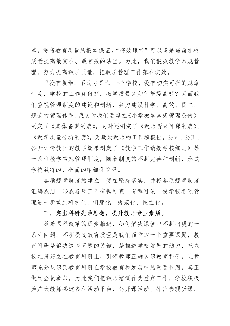 校长论坛发言严谨治学,不断优化常规管理各位领导、各位同仁:大家好!一个学校的兴衰荣辱牵连着千家万户的心,作为校长就是要沉下心来为学校的事业着想,为莘莘学子着想,为现在、未来学校的切身利益着想,扎扎实实做出几件事来。一个好校长就是一所好学校,校长除了有深厚的理论知识和精湛的业务素质外,还要有改革创新的理念来做指南、务实求真的作风来做保障,不然,学校的工作就没有方向、没有活力、没有成效,就会陷入“死循环”。我发言的题目是“严谨治学,不断优化常规管理”,有不足之处请各位指正。一、严格执行课程计划,开足、开齐、开好各类课程。学期开始根据上级规范办学行为课程开设要求,严把课程关、课时关,科学规划,编排课程总表,教师要严格按照课程表上课,不挪用挤占其它课程。教务处每天都认真做好记录,随时抽检课程执行情况,发现问题及时整改,确保课程落实到位。二、狠抓教学常规,实施精细化过程管理。抓好教学常规管理制度,教学是学校的中心工作,是学校培养人才,实施发展的基本途径,教学工作的好坏,关系到整个教育质量的高低,关系到所培养人才的素质,是深化教育改