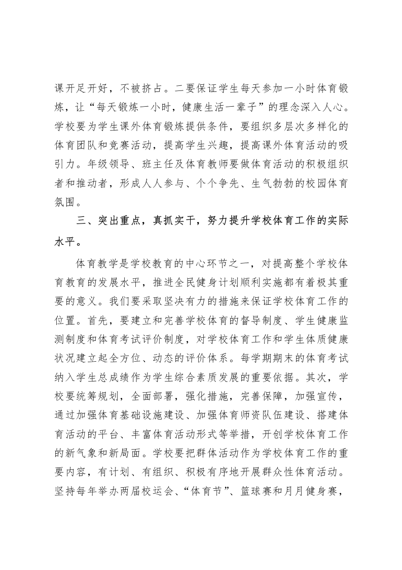 校长在体育工作会议上讲话参加体育锻炼,培养健身意识,崇尚健康第一此内容为付费资源,请付费后查看