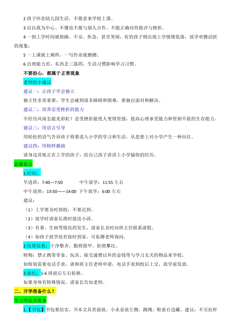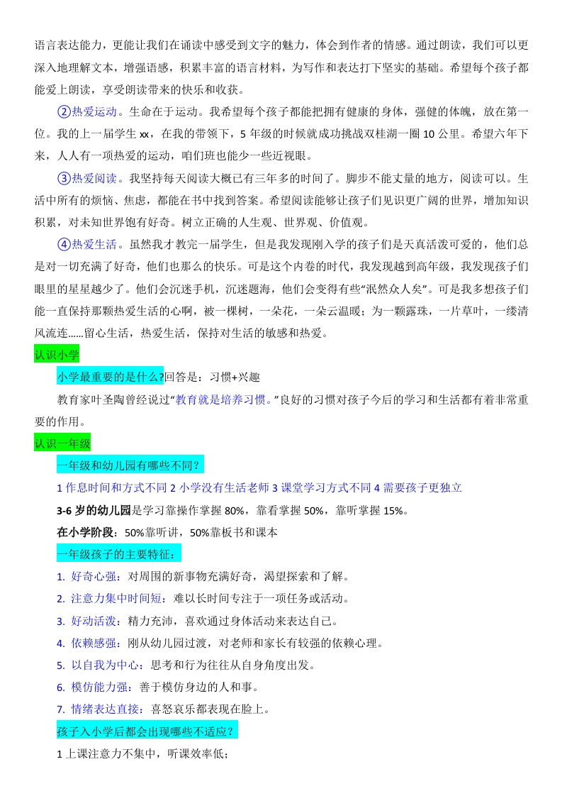 【一上】【人教版数学】【小学我们来啦】开学家长会-发言稿前言:遇见,是故事的开始:携手,是温暖的篇章:我们与您的邂逅,是爱与信任的同行,愿接下来的6年,我们携手共赴美好远方。目录:01我们是小学生啦02开学准备什么?03一年级学什么?04需要您的配合“、我们是小学生啦认识一()班我们是46名宝贝组成的新生大家庭,男生23人,女生23人年级开设的课程有语文、数学、音乐、体育、美术、道德与法治、书法、阅读认识各科老师:介绍下各科老师及联系方式认识班主任我是谁?我叫,是我们一()班老师,从事教师职业已经有x年,有着丰富的教学经验。接下来的6年,我会尽己所能,陪伴孩子们成长。用心浇灌,陪伴他们从一棵幼苗,成长为挺立的小树:从牙牙学语的稚童,成长为x学校的大美少年!欢迎联系班主任xx老师的手机号:1300000000班级QQ群:12345678(QQ群要求:作业及学校通知会在QQ发布,请家长添加后自动更改群名称为:X+家长,本群只谈教育,只谈孩子,其他言论一律不在群里发。个别学生的事情请和老师个别交流。)上课和管班时间我身边不带手机(孩子们在校的照片不会像在幼儿园一样经常发),如果有急事又打不通电话请发短信,我在空课时回复。晚上9点以后,电话静音,敬请谅解!我想在座的家长或多或少都有一些自己的教育理念:望子成龙成凤:黄金棍下出好人;“放养型”:”内卷型”;顺其自然型…我简单说说我的教育理念吧。我觉得在小学阶段,孩子的童年只有一次,很是珍贵,我个人还是希望他们能够拥有一个快乐的童年,德智体美劳全面发展。具体而言,我希望我带出来的孩子,能拥有如下“四项热爱”。①热爱朗读。朗读,是语言的艺术,也是情感的流露。它不仅能够锻炼我们的口齿清晰,提升