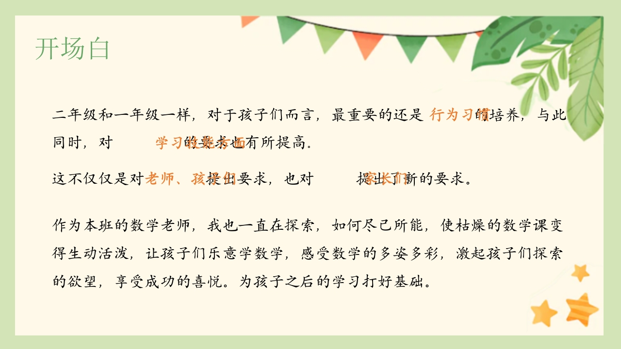【二上】【人教版数学】【以“心”迎新携手同行】开学家长会-课件tangqi8811天前发布关注私信7.11MB54页02010 第1页 / 共54页 第2页 / 共54页 第3页 / 共54页 试读已结束,还剩51页,您可下载完整版后进行离线阅读 【二上】【人教版数学】【以“心”迎新携手同行】开学家长会-课件此内容为付费资源,请付费后查看¥9.9¥19.9VIP会员免费立即购买您当前未登录!建议登陆后购买,可保存购买订单付费资源© 版权声明本站是一个信息分享及获取的平台,不确保部分用户上传资料的来源及知识产权归属,资料由老师投稿,公开渠道整理,网友上传,如果侵犯到您的权益,请联系客服删除THE ENDPPT课件 文本预览 ★二上数学开学家长会(人教版)以行“心”迎新携手同三班主任:XXX班级:二()班之 查看更多 收起部分 喜欢就支持一下吧点赞10 分享QQ空间微博QQ好友海报分享复制链接收藏