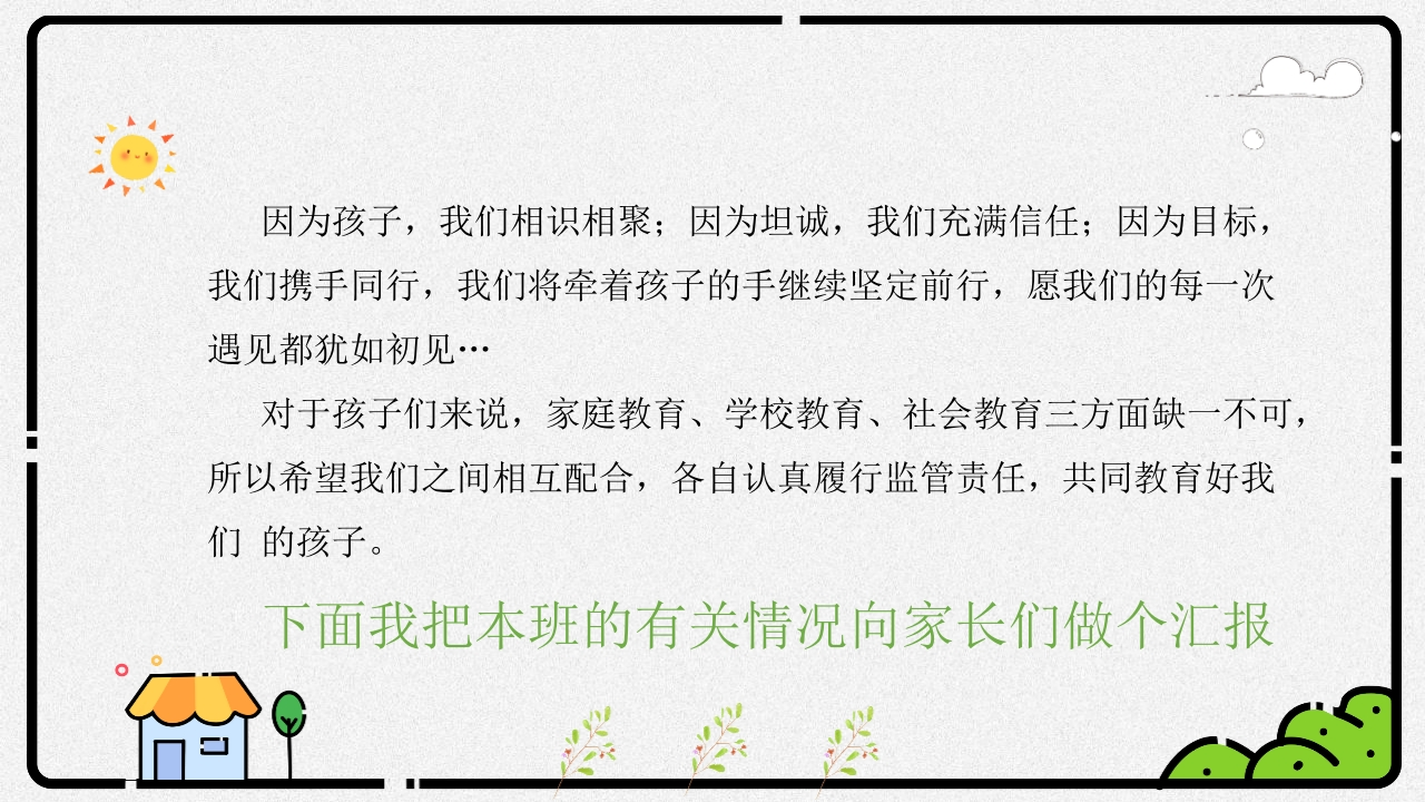 【二上】【沟通理解关注成长】期中家长会-课件tangqi8812天前发布关注私信6.84MB56页02710 第1页 / 共56页 第2页 / 共56页 第3页 / 共56页 试读已结束,还剩53页,您可下载完整版后进行离线阅读 【二上】【沟通理解关注成长】期中家长会-课件此内容为付费资源,请付费后查看¥9.9¥19.9VIP会员免费立即购买您当前未登录!建议登陆后购买,可保存购买订单付费资源© 版权声明本站是一个信息分享及获取的平台,不确保部分用户上传资料的来源及知识产权归属,资料由老师投稿,公开渠道整理,网友上传,如果侵犯到您的权益,请联系客服删除THE ENDPPT课件 文本预览 202x年秋【沟通理解关注成长】二年级上册期中家长会汇报人:xx 查看更多 收起部分 喜欢就支持一下吧点赞10 分享QQ空间微博QQ好友海报分享复制链接收藏
